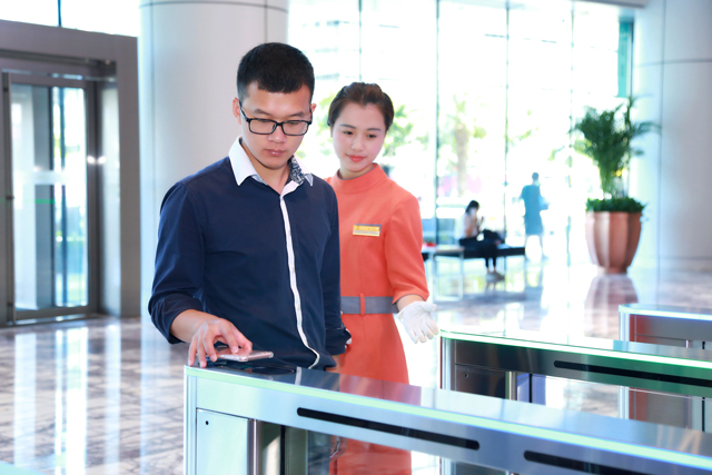 ? ? ? ? 財富中心借助先進的智能配套設施“閘機系統”,人臉識別、二維碼掃描及訪客智能預約功能,有效地阻止了外來閑雜人員進入公司擾亂辦公秩序,讓大廈更為安全,構建更放心的辦公環境。