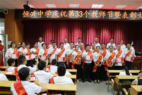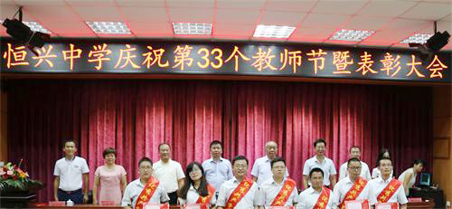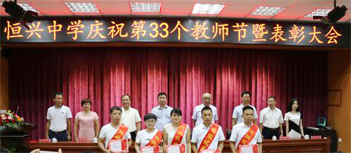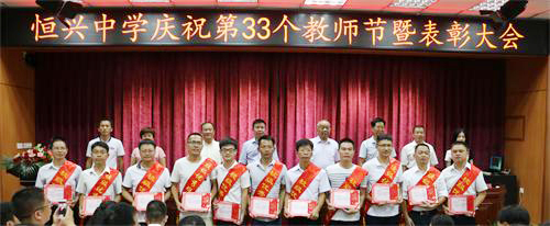 ? ? ? ? 9月9日下午,學(xué)校教職員工歡聚一堂,在多媒體教室(1)熱烈慶祝第33個教師節(jié)并舉行了隆重的表彰大會。廈門恒興集團董事長柯希平先生撥冗蒞臨學(xué)校與全體教職員工共度一年一度的教師節(jié),出席本次大會的還有新一屆的學(xué)校董事會成員。本次大會由林文土?xí)浿鞒帧c祝表彰大會由校長致辭、表彰儀式、教師代表發(fā)言、學(xué)生代表發(fā)言、柯董講話五個部分組成。