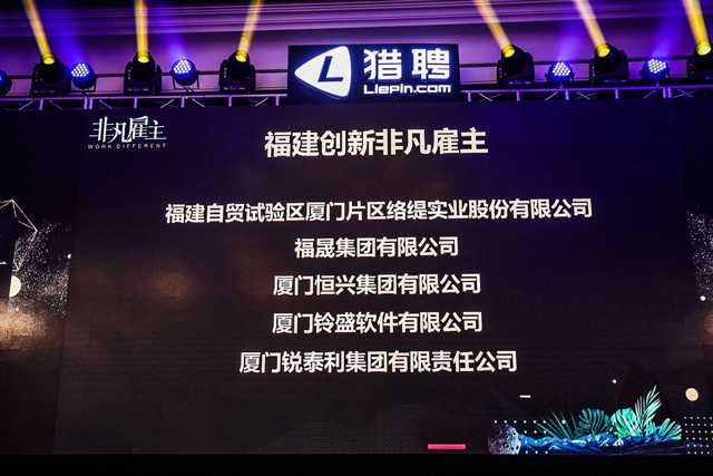 ? ? ? ? 11月28日,“獵聘2017非凡雇主·廈門站”年度頒獎盛典在廈門威斯汀酒店隆重舉行。廈門恒興集團從上萬家雇主企業中脫穎而出,榮膺“獵聘2017福建創新非凡雇主”榮譽稱號。