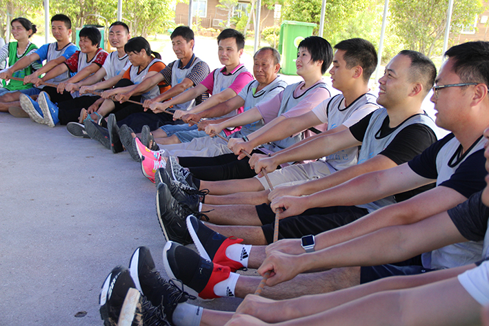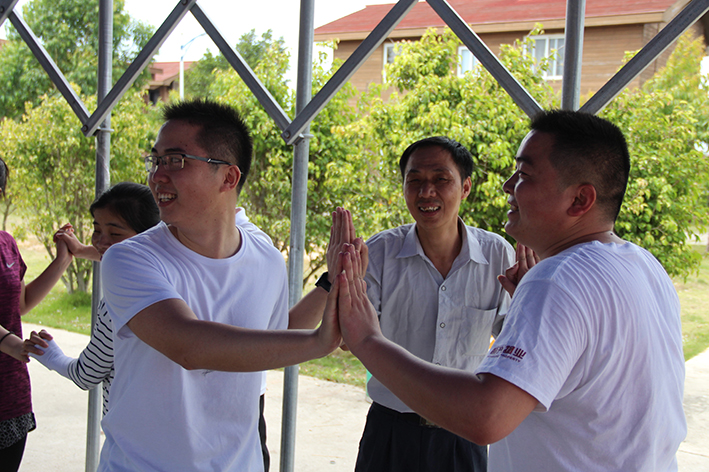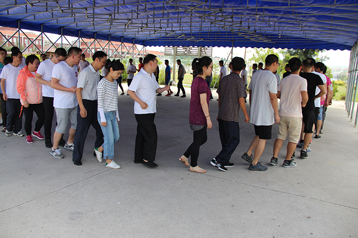 首先在“團隊破冰”活動拓展教練教大家通過一系列輕松有趣的熱身操、熱身游戲,讓大家打消彼此隔膜、拉近距離,為全天的訓練活動做好身心準備。活動中,大家肩并肩、手拉手圍成大圈,聽著拓展教練的指令一起做趣味協作游戲“老爺爺賣花”,根據口令形成規定人數的組合,落隊的成員就要接受指定懲罰表演,不僅考察了大家的反應能力,也讓大家在游戲中放松心情,調整狀態。