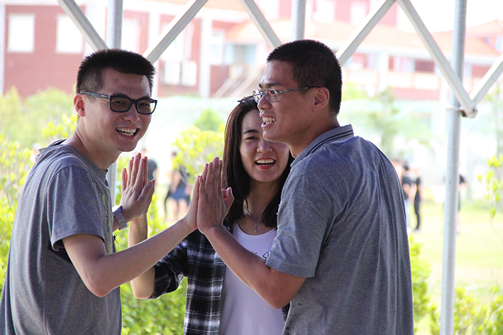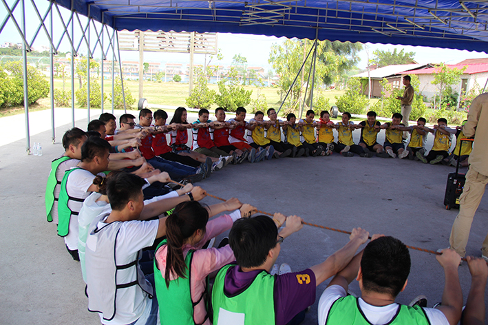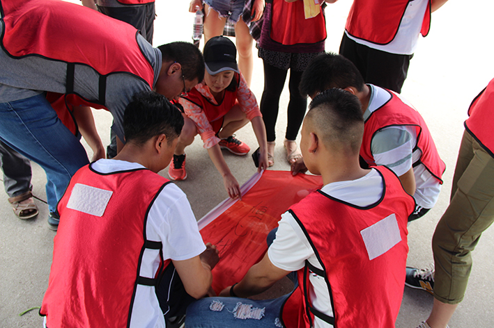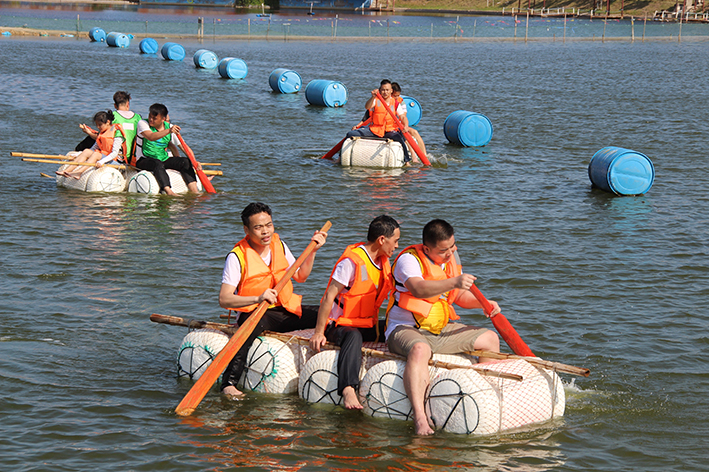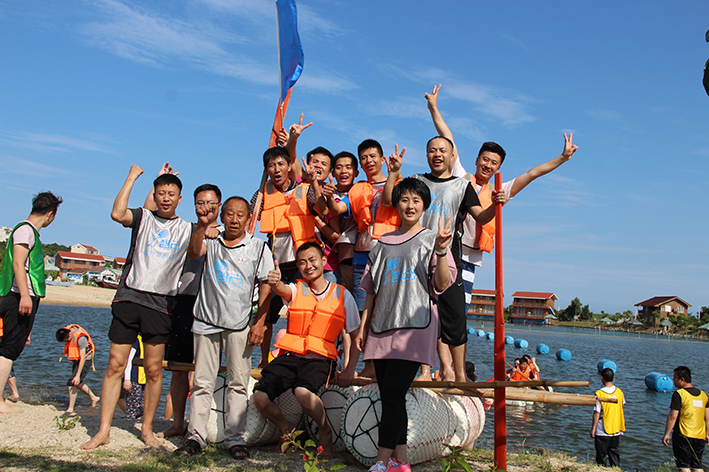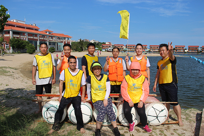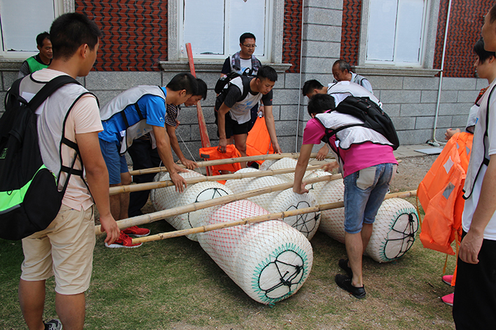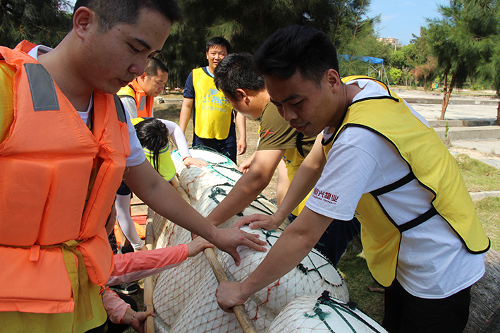 緊接著是“扎筏泅渡”的活動,各隊人員面對簡易的渡船設施——油桶、竹竿、繩子,大家透過群策群力、合理分工、凝心聚力迅速造了一艘船,而又安全地護送全部隊員抵達彼岸。讓大家更深刻地體會組織、溝通、協作在工作中的重要性,也增進大家的情感交流。