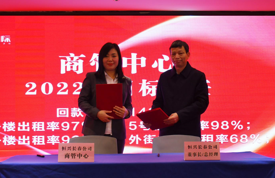 楊聯城董事長分別與營銷中心、商管中心、美居酒店、物業中心、企劃部簽訂2022年目標責任書。