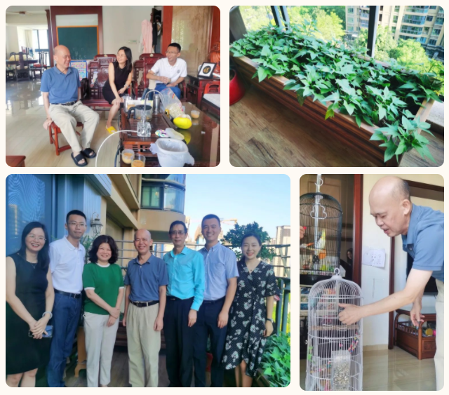 集團原副董事長羅映南家中,兩只鸚鵡吸引了大家注意,原來羅董在家逗鳥、種菜,在都市一隅醉夢“田園光景”,好不快活。據羅董太太介紹,本學期進入華師希平雙語學校就讀的大孫女,已化身學校小小宣傳員,在小區內逢人便介紹希平學校老師們有趣的教學方法,分享她在校園感受到的快樂。言談中,皆是兒孫繞膝盡享天倫的福氣。