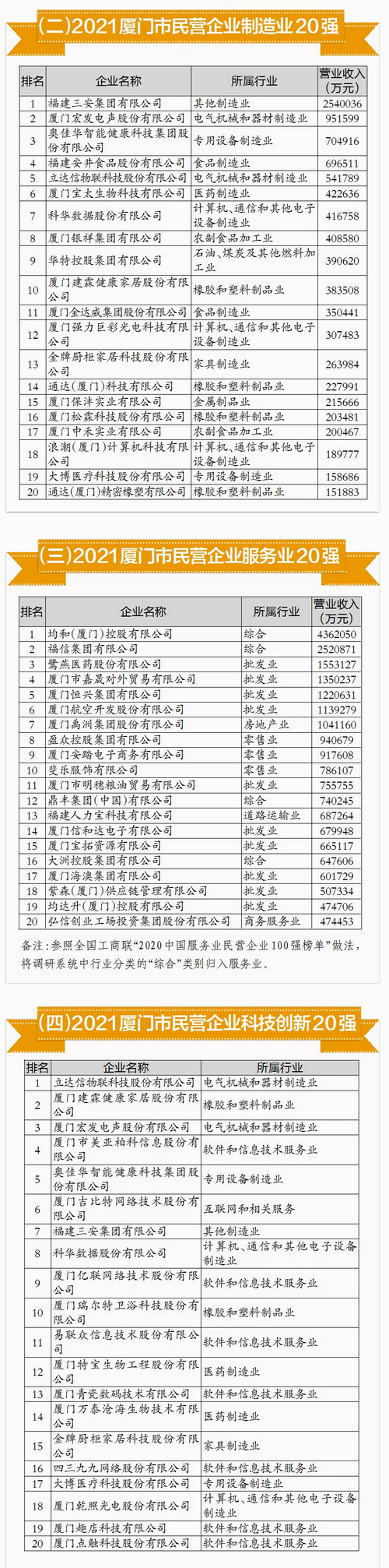 2021廈門市民營企業(yè)服務(wù)業(yè)20強(qiáng)